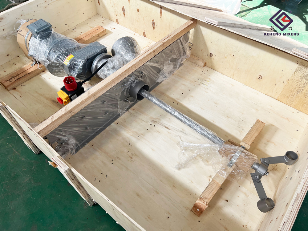 In July 2024, KEHENG received an inquiry from a German customer for IBC mixer for mixing viscous liquids, along with a sample picture of a similar product. In order to accurately judge the design parameters of the mixer, we asked the customer the following key information: mixing medium, tank size, the opening size of IBC tank, blade shape requirements, material requirements, etc. These datas will become the basis for our subsequent technical evaluation and equipment selection design.
